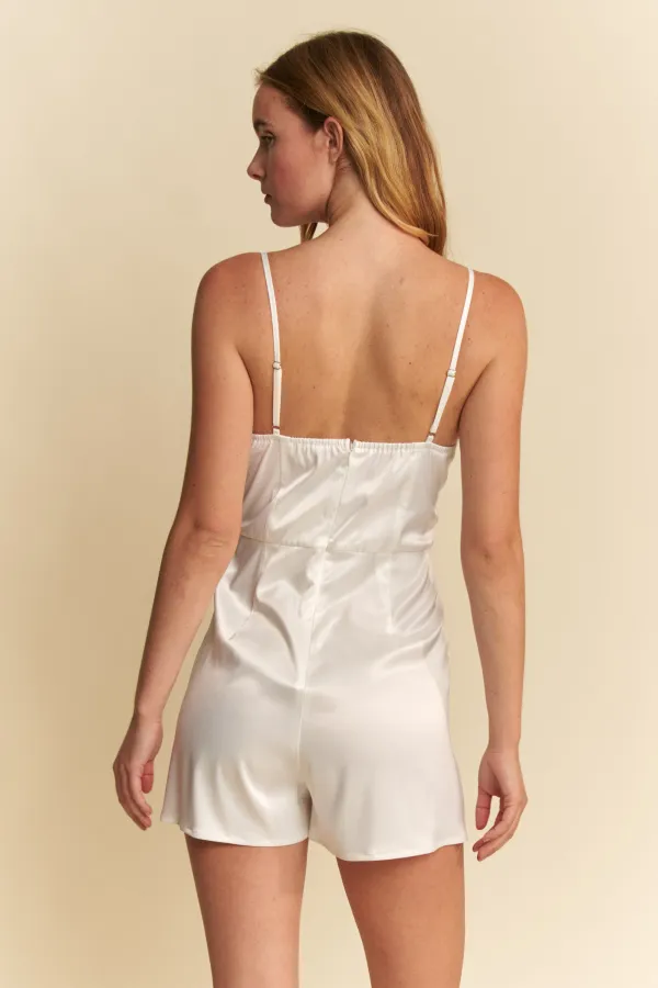 -SATIN RUCHED -BUST ROMPER Height: 5'9"/175cm Bust : 32"/81cm Waist : 24"/61cm Hip : 34"/86cm